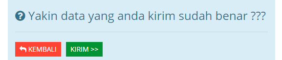 - Terakhir Maka akan muncul tampilan berikut, lalu klik tombol "Kirim" untuk menyimpan survey kepuasan. Atau klik tombol "Kembali" untuk kembali ke langkah sebelumnya.