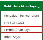 - Setelah berhasil Login, maka pilih menu bar "Permohonan Saya".